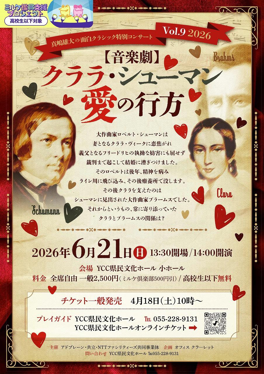 真嶋雄大さんの面白クラシックになんと!作曲家シューマン役(男性)で出演いたします。
